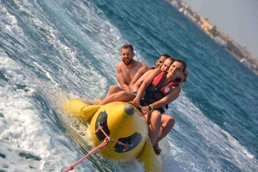 Water activities: banana ride, inflatable boat, parachute ride